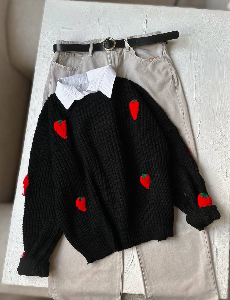 کد ۰۱۱۱۱۴۴۸ پلیور بافت توت فرنگی